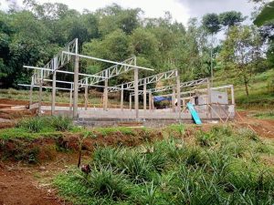Pembangunan Bank Sampah dimulai dengan peletakan batu pertama yang disaksikan masyarakat desa. Tahap konstruksi gedung dilakukan secara bertahap hingga berdiri kokoh dengan rangka baja ringan dan dinding permanen. Setelah itu, peralatan pengolahan sampah berteknologi digital dipasang, meliputi mesin pemilah dan pengolah yang dilengkapi sistem kontrol modern.